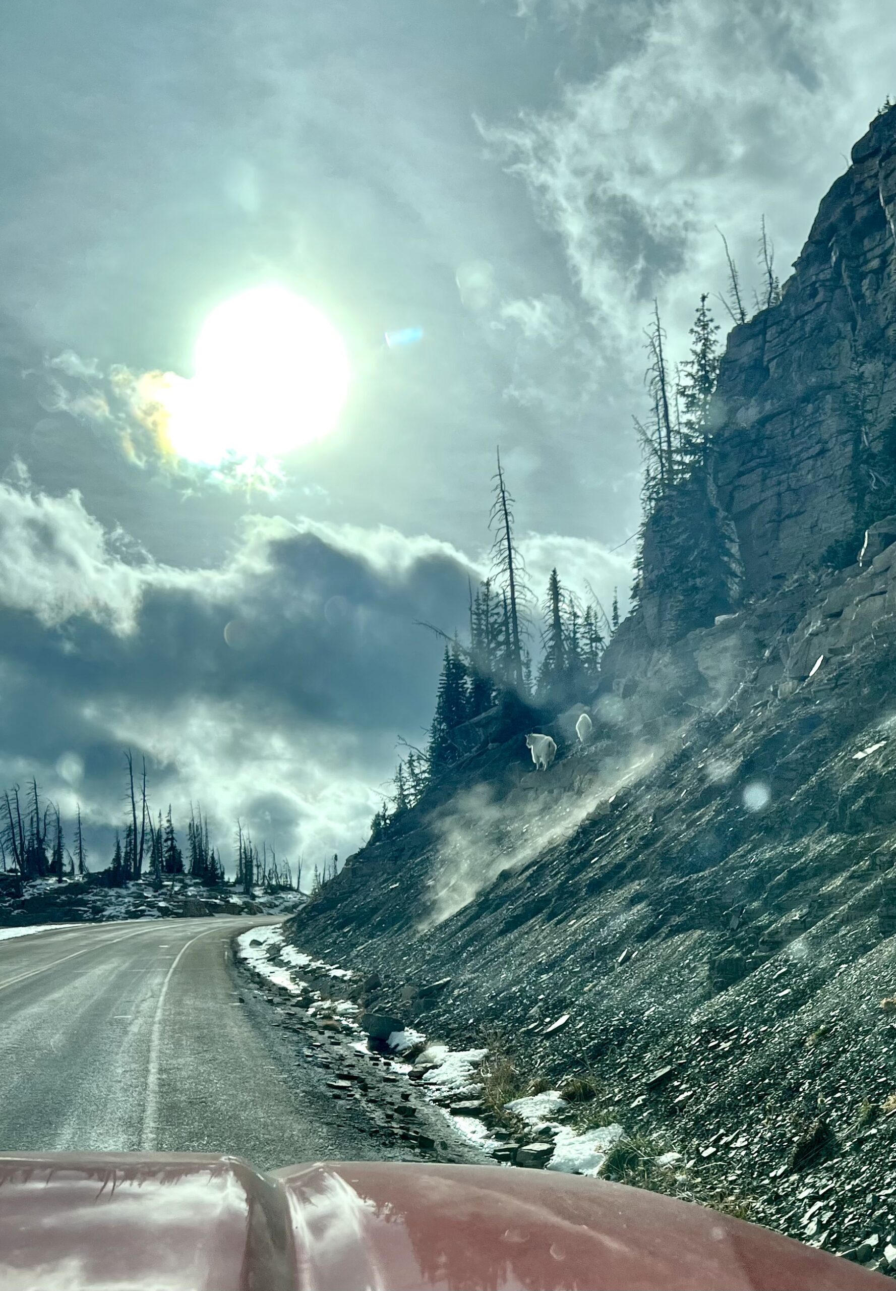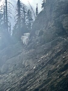 On Friday the 3rd of November, 2023, we had been scouting an area my husband has a special elk hunt permit for. We decided to take a scenic route home, the Mirror Lake Highway. As we came to the summit of the Highway, we scared this nanny mountain goat and her kid off the road and up the hill in front of us. We stopped and I took some pictures and a video. They are such beautiful animals and so rare to see in the wild. My husband in his 68 years here in Utah, has never seen a mountain goat before. He is an elk and deer hunter and we as a family have been all over Utah and its mountains and have never seen mountain goats before. We’ve seen big horn sheep, cougars, bobcats, moose, elk, deer and numerous other animals, but never the goats. They are such beautiful animals, it was a once in a lifetime experience for us…and one we will never forget.