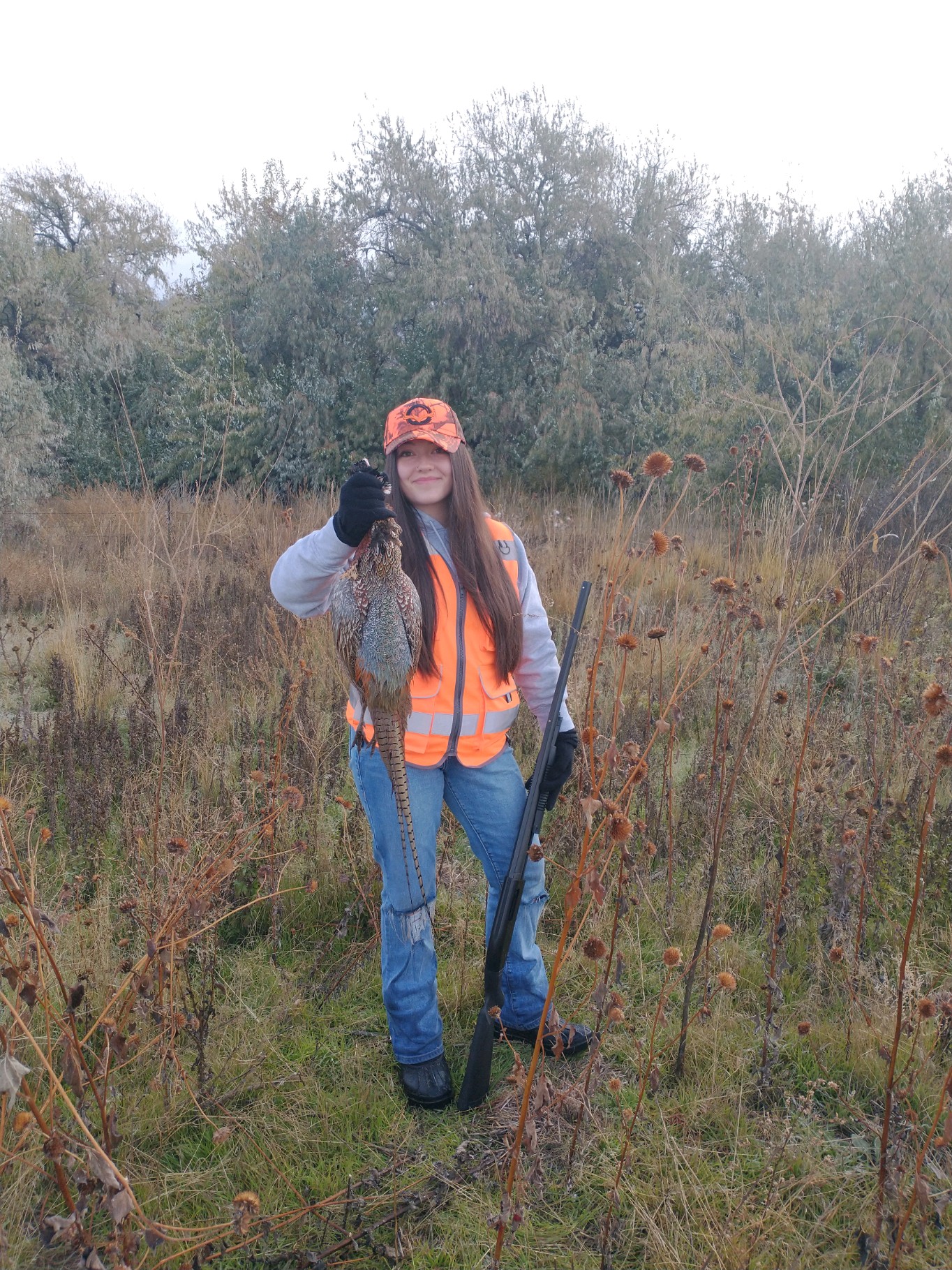 Brylans first hunt she bags this nice rooster. She was so excited her scream could be herd for miles. Her grandpa Brian was with her and proud as ever.