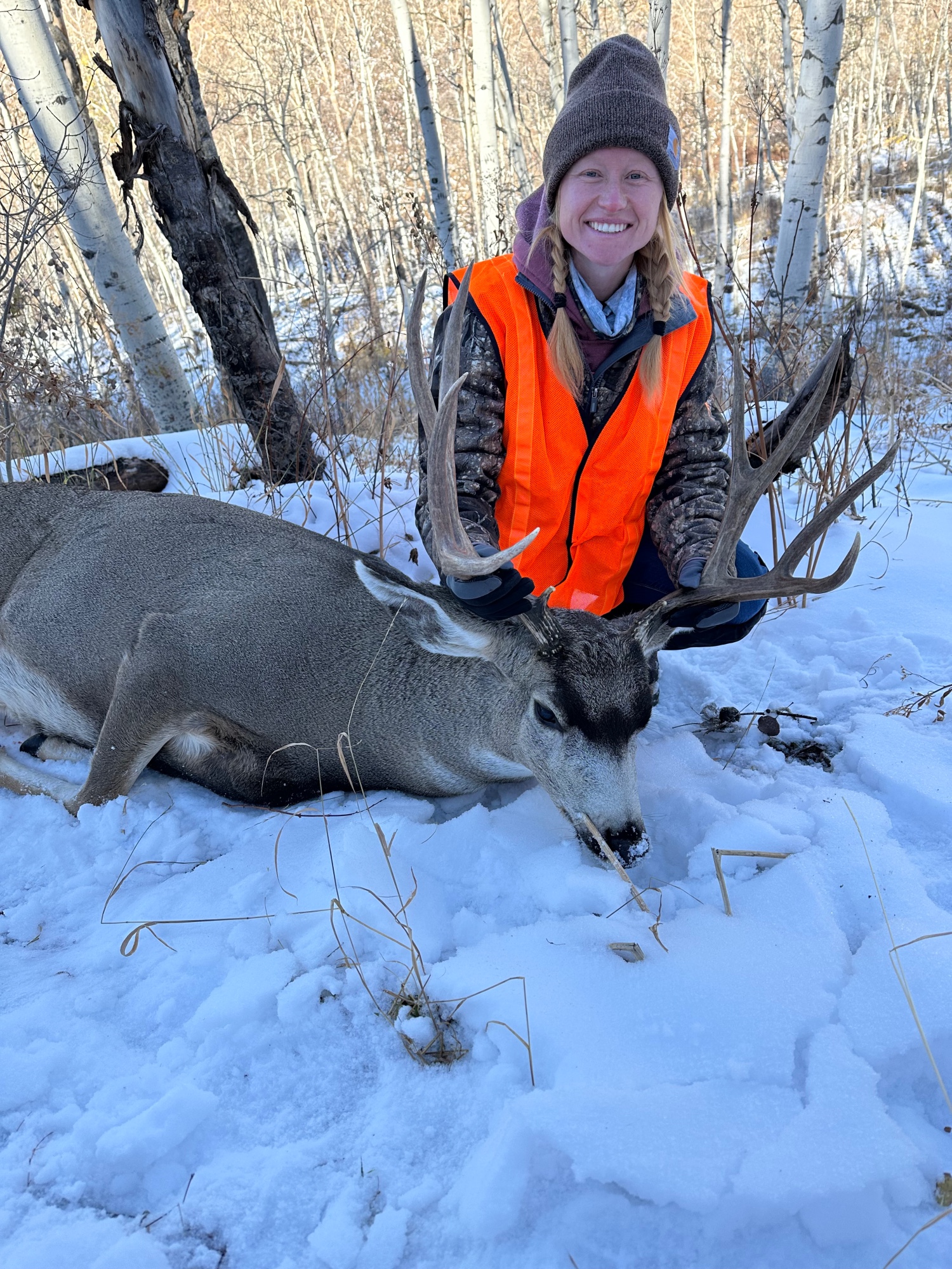 It was a great year for the girls. Both taking their personal best mule deer. First Hailey, her dad Scott, Hailey and her mom Natalie found this heavy 4 point opening morning. Hailey made a great shot at 382 yards. She was so happy. Then the pain is shown on the pack out. Was a great morning. Then it was Natalie’s turn. After traveling to new unit and passing some really good deer this big wide 3×3 got Natalie excited and she decided he was the one. One shot at 200yrds with her .243 and she had her personal best. Nice job girls.