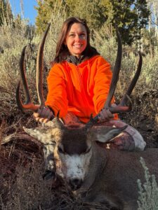I finally became a member of the “Big Buck” club last week after this past hunting season. Last spring, I was lucky enough to draw a limited entry buck deer tag for the West Willow Creek CWMU tag after 15 years of putting in for limited entry deer. My husband and children are experienced hunters, and have been on numerous hunts before, but this year is the first time I was able to hunt for a true trophy buck of my own. On the first day of the hunt, we were able to locate and harvest this awesome buck at 300 yards. The big buck measured 27 inches wide, and he gross scored 176 points. My husband, two of my sons, and my grandson was with me to watch me harvest this big buck, and it truly was an experience of a lifetime.