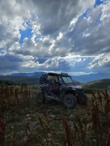 While up hunting for some elk in cache National forest i found myself on a peak up above old Ephraims grave! I was watching the storm roll in as I heard a couple of close bull bugles I saw the opportunity to take a picture of the sun poking through the clouds as it shown down on my rzr. As I got hopeful the storm would just miss Me and I could pursue those bugles I heard the storm came right at me forcing me to take shelter then back to camp. Wasn’t able to find the elk but it was sure pretty for a couple minutes.
