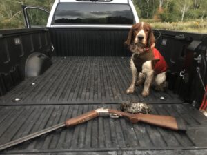 Rainier’s (1 year old Welsh Springer Spaniel) first wild bird. Dusky Grouse in Wasatch Mountain State Park.