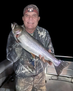 I went night fishing with at Strawberry with a couple of friends and managed to boat this beautiful cutthroat. It weighed 4.1 pounds and measured 23 1/2 inches. With millions of stars out and a moonless night, the only sounds were that of fish jumping and jet airliners over head. Even Alaska would have a hard time competing with this! P. S. This is an update to an earlier submission, but I’m smiling in this photo.