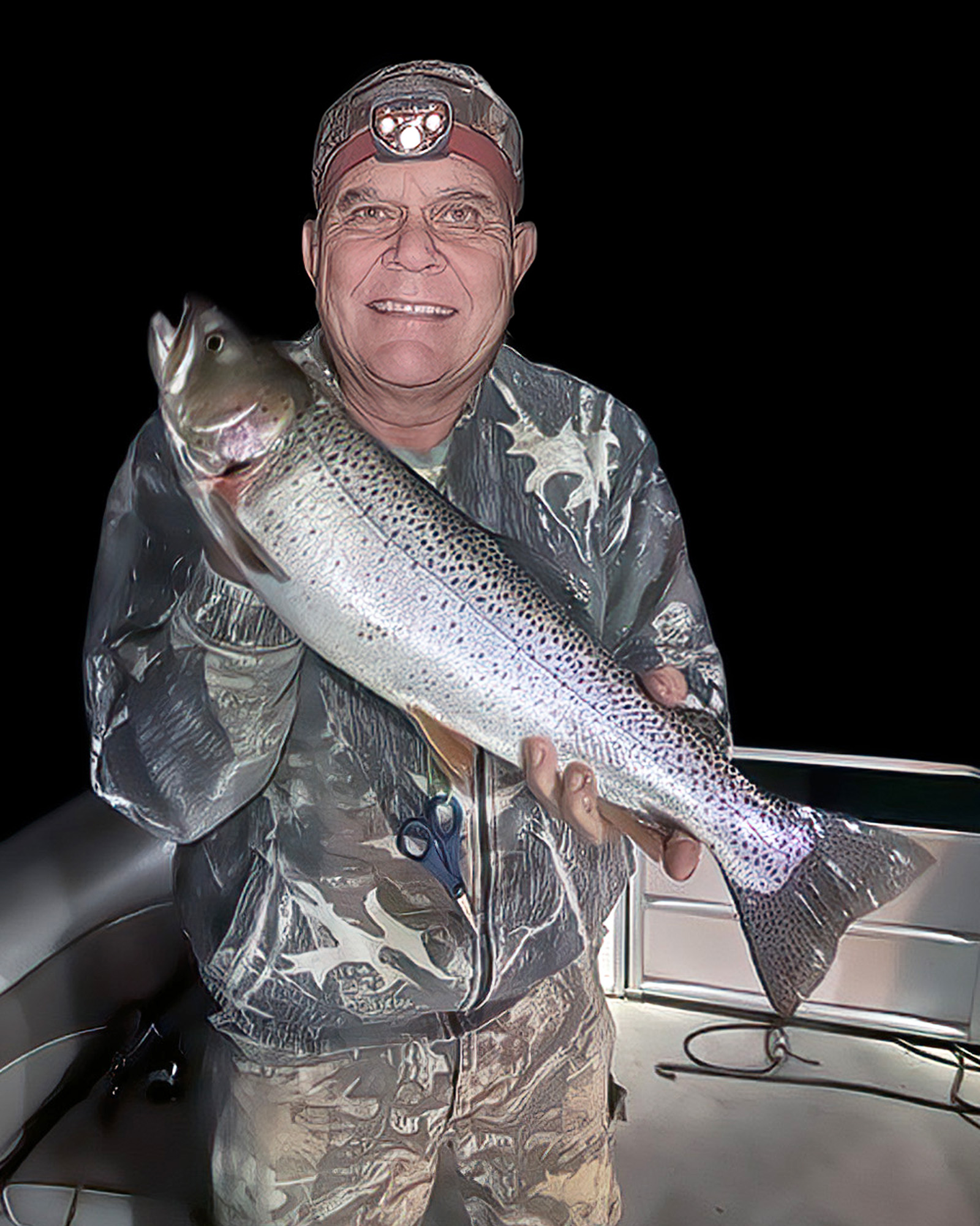 Night Fishing at Strawberry with a couple of friends I managed to boat the beautiful cutthroat. The fish went 4.1 pounds and 23 1/2 inches. With millions of stars and no moon, the only sounds on the lake were of fish splashing and jet airliners overhead. Even Alaska is hard to beat this!