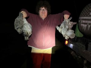 Silo’s first hunt was the rifle deer hunt that started out with excitement and hope to get his first deer. As the day went on and not seeing any bucks we saw a grouse on a log, his uncle asked him if he wanted to shoot it. Without a second to ask a second time silo was already out of the side by side and said yes. He shot it. He handed mom the gun and his uncle Dusty told him there was another one, he shot that one that triggered a third one to fly up and he shot that one. . So in about 30 seconds he had three grouse. This totally made up for not seeing any bucks let alone getting his first deer. Not sure who was more excited Silo or his Uncle Dusty Later that day he shot his limit. The smile on his face says the first day of his first hunt was a success even if wasn’t killing a deer. The picture during the day is the first three. Then the limit at night