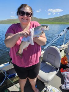 High Quality Fish: My dad, sister, and I had a fantastic fishing trip to Strawberry Reservoir. We didn’t catch very many fish, but the ones we did catch were very high quality. We finished the day with catching four 20 inch rainbows, 3 of which we kept for the grill along with another 16 inch rainbow. Overall it was a great day!