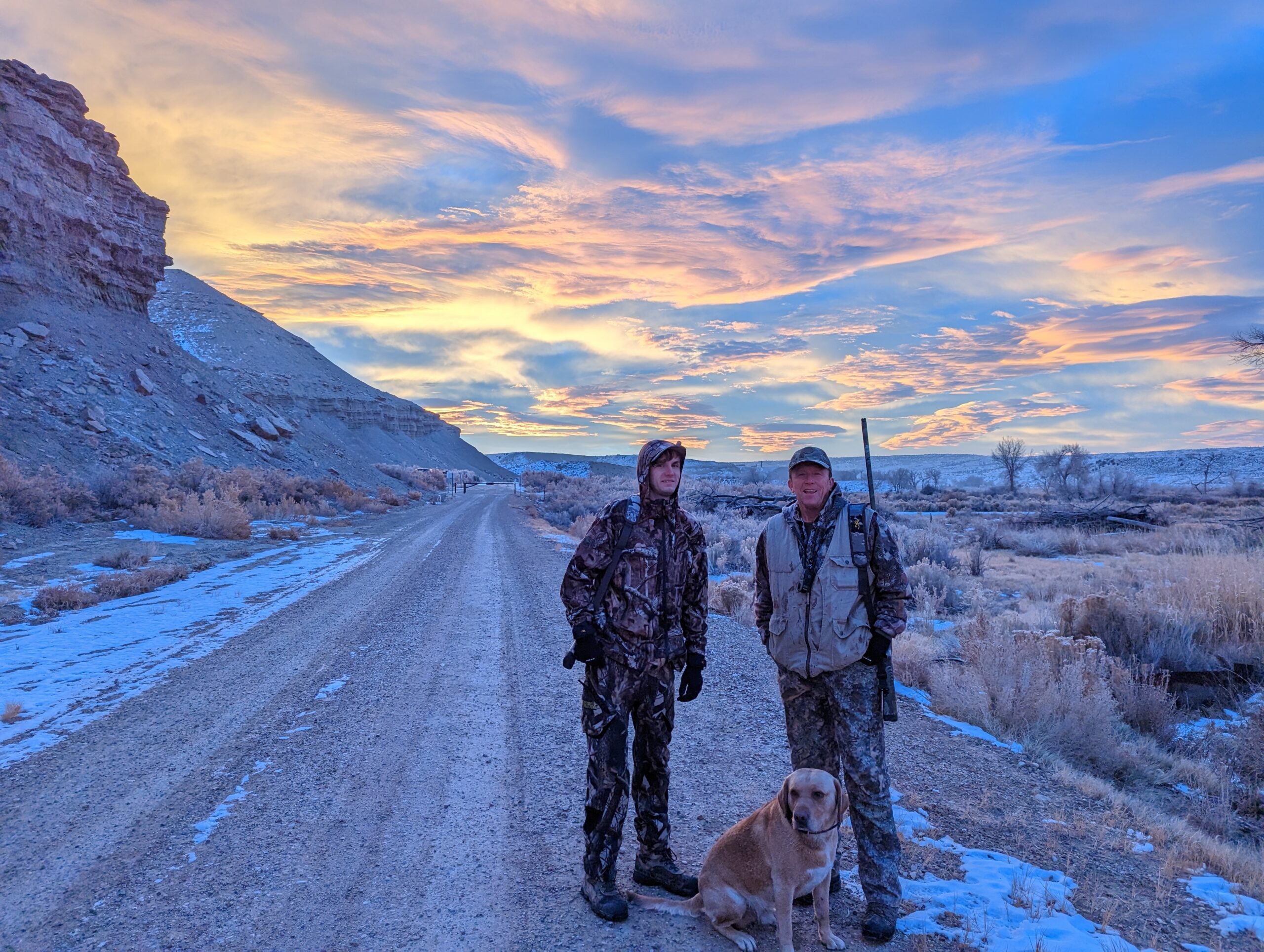 My son, Craig and dog, gus out in the Basin on a winter duck/goose hunt witnessed this amazing sunrise.