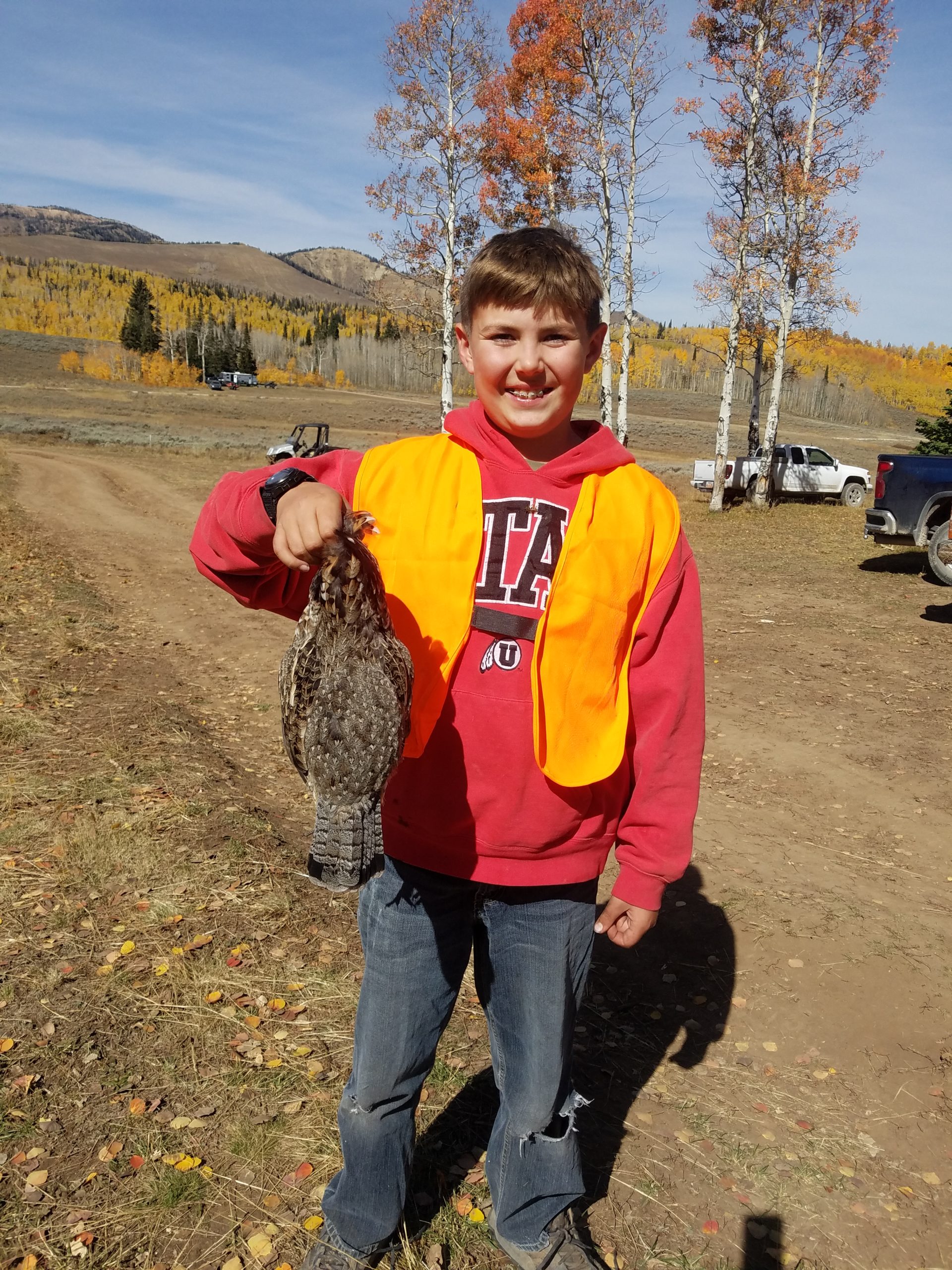 During the elk hunt 11 year old Jaden had the opportunity to score a pine hen and did so. His first successful bag with his newly acquired small game license. Jaden was the only one with any success during the elk hunt.
