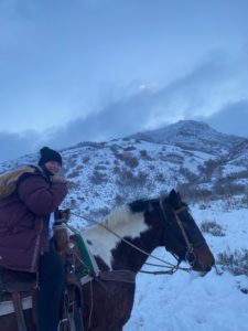 My girl Bailey is home from college for the holidays, We enjoy riding our horses year all year. It’s always fun seeing the animals. Look at all the elk behind her in this picture.