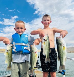 A picture of some of the nice bass we caught out of Steinaker Reservoir in Vernal. It was an amazing afternoon spent with my sons Caleb and Paxton. The smiles say it all. These boys love to fish!