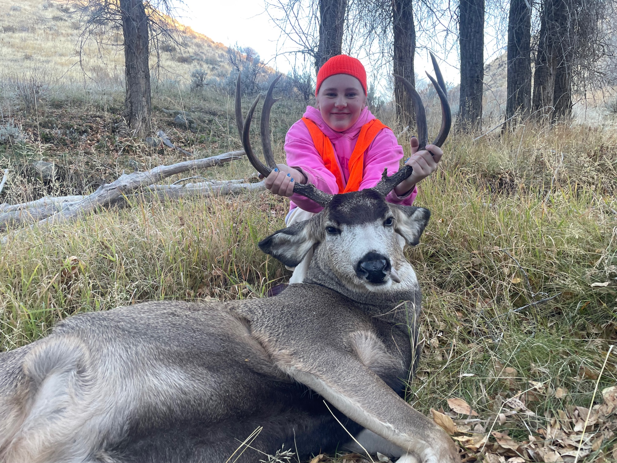 This season, Mayzie took her very first deer, and it turned out to be the biggest first deer in her entire family—something she’ll definitely remind them of often! While hunting in the East Canyon unit, her dad spotted a buck at about 175 yards. After fighting her buck fever, she took plenty of time to set up and made one great shot! Her and her dad were super happy, and they shared a special moment they’ll never forget. An incredible memory and an amazing first deer for Mayzie!