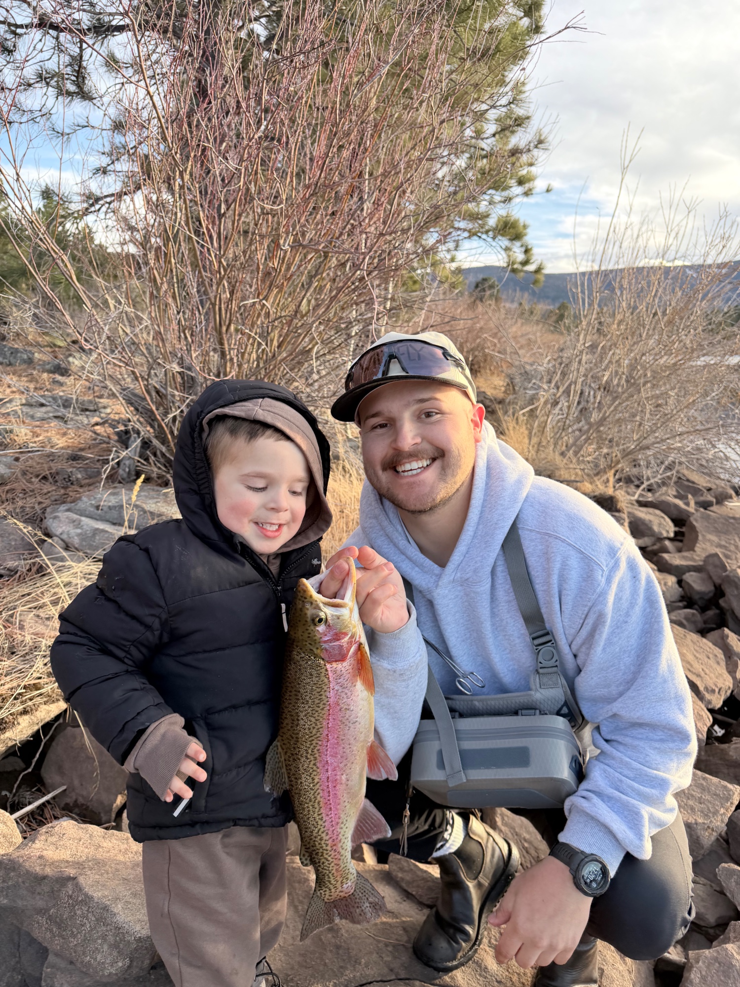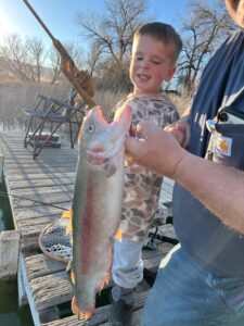 This is a picture of my grandson‘s first year fishing with papa and dad. His dad, Brandon, and I took him to the Green River the first week in March where he caught his first rainbow. Ever since then he’s been begging to go fishing. Yesterday (March 20th) we went to Burston Ponds where he caught his second big rainbow. This kid is a fish magnet!