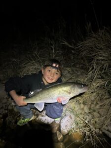 I’d been fishing Utah Lake all day. I was cold, tired, and not catching much of anything. I kept moving spots, switching baits, just trying everything I could. I didn’t want to quit. Right after it got dark, I felt a large heavy thump. My rod bent hard and my heart started pounding. I held on tight and fought it all the way in. When I finally saw it, I couldn’t believe it, a huge walleye! 29 inches. 7.2 pounds. I actually did it!!! My dad just smiled and said, “You earned that one.” And that’s when I knew… it was all worth it.