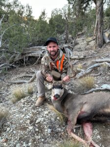 After a missed shot at this deer, my shot ricocheted of a rock and hit him in the antler backwards. DWR check point had never seen this happen. This buck that gave me a heck of a fight finally succumb after a shot in the leg, then the antler and finally in the neck. My family came with me for my first limited book cliffs tag with a mere 9 point draw.. A memory we will never forget.
