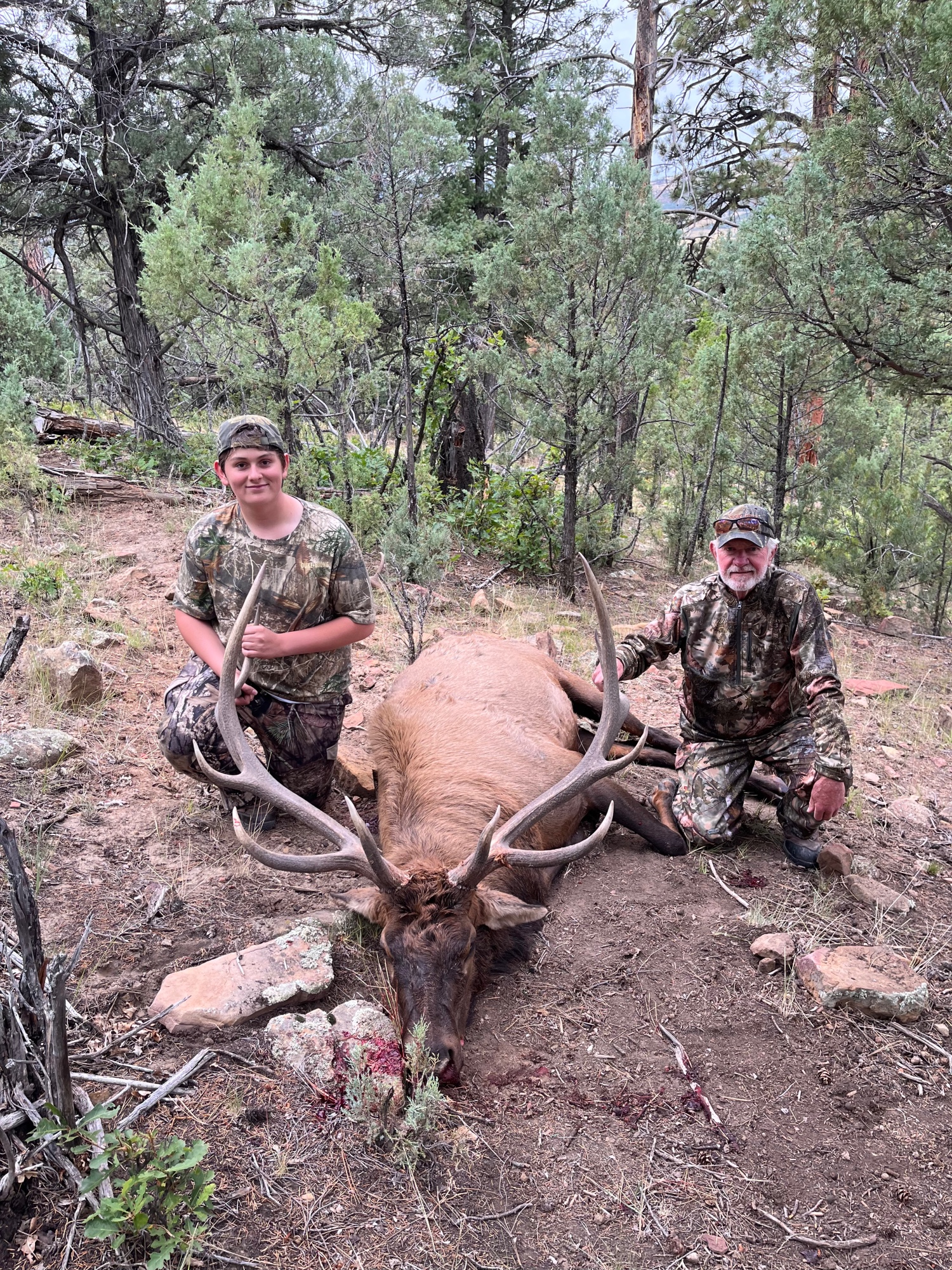 Got my first elk with my grandpa, He took me out to New Mexico,1 year after he went to the same place and got a bull. It was an amazing experience I will never forget! He loves the show I just hope he can see a picture of us on there.
