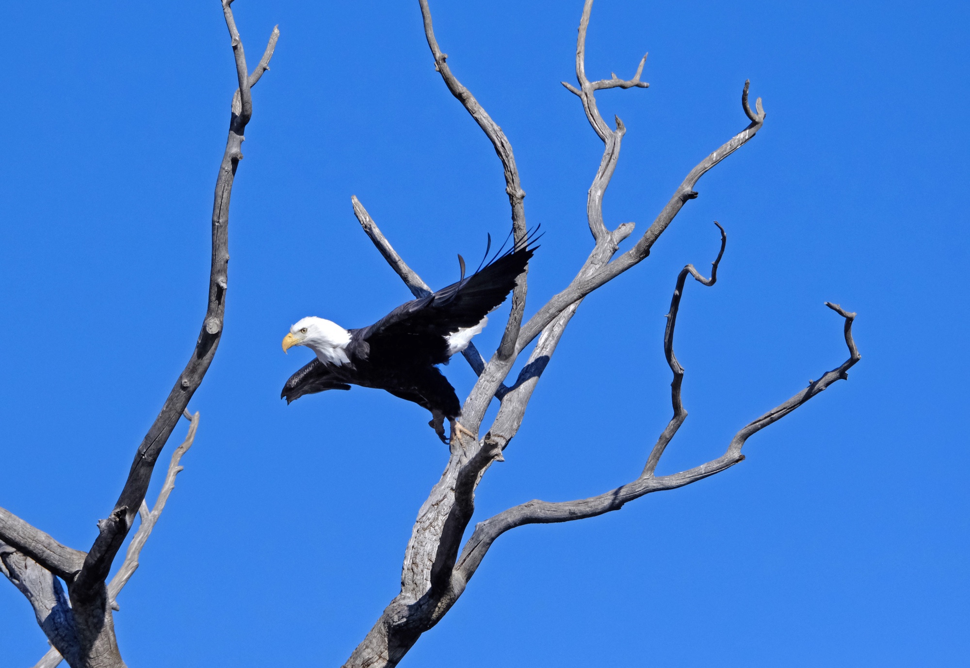 Just got home from having spent two days scanning the treetops of Sanpete County in search of bald eagles. I’m told they congregate on a tree on the west side of the valley; however, so far the birds haven’t got the memo. So, I tried my luck on the opposite side, near the town of Milburn. Earlier today, I was very happy to spot this fellow, and just as I pressed the shutter, he took flight. It may have signaled the end of some unfortunate rabbit, but it was the highlight of my trip!