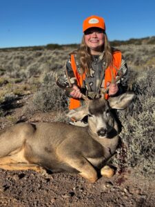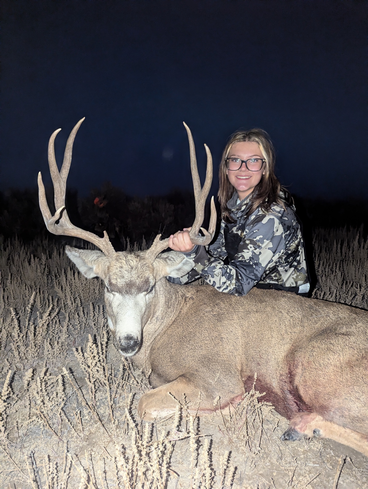 My names Jaycee and I’m a youth hunter. I started hunting this year. This was my first deer and big game hunt. I hunted the box elder unit public land. At dusk in the opener of the hunt, we found a group of 12 deer with two little 2 points. Someone spooked them when they started to run a 4 point was with the group. We stalked them to where they ran a couple miles away and found a spot to take a shot. They were moving away. I had a broadside shot at 446 yards. I was able to make a good shot and harvest my first deer. What an incredible experience. I’m hooked.