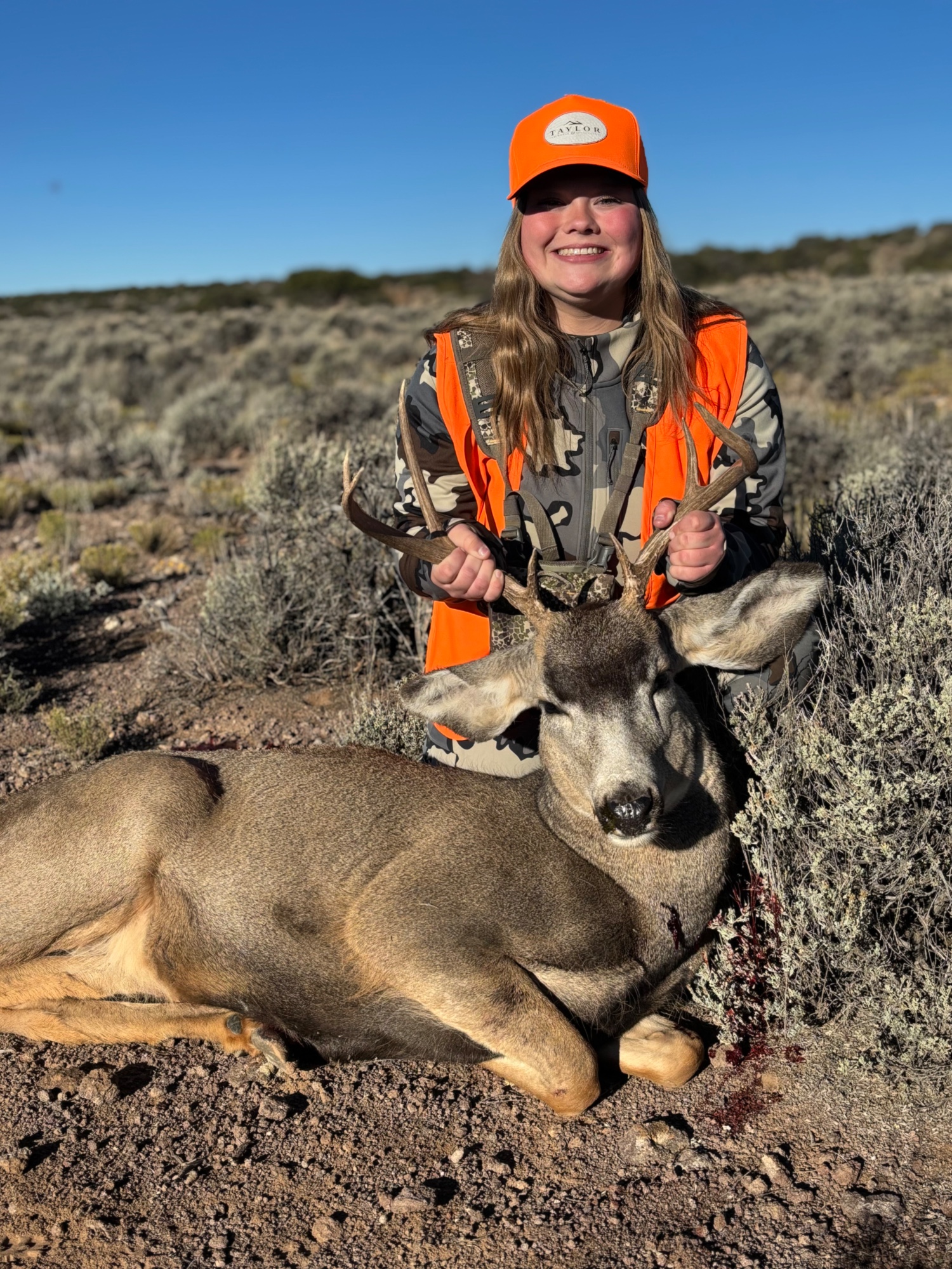 This is my daughter Reagan, she’s 19 and this was her first buck. She drew a fishlake tag and was able to take this 2X3 buck with one shot from 200yds. She was super excited. Our family was all there to share the excitement and success with her.