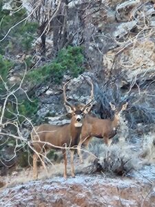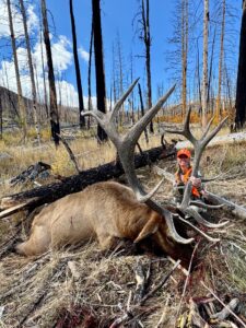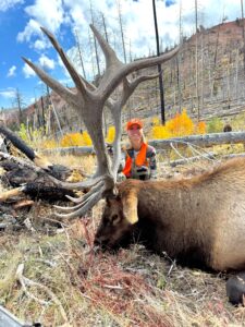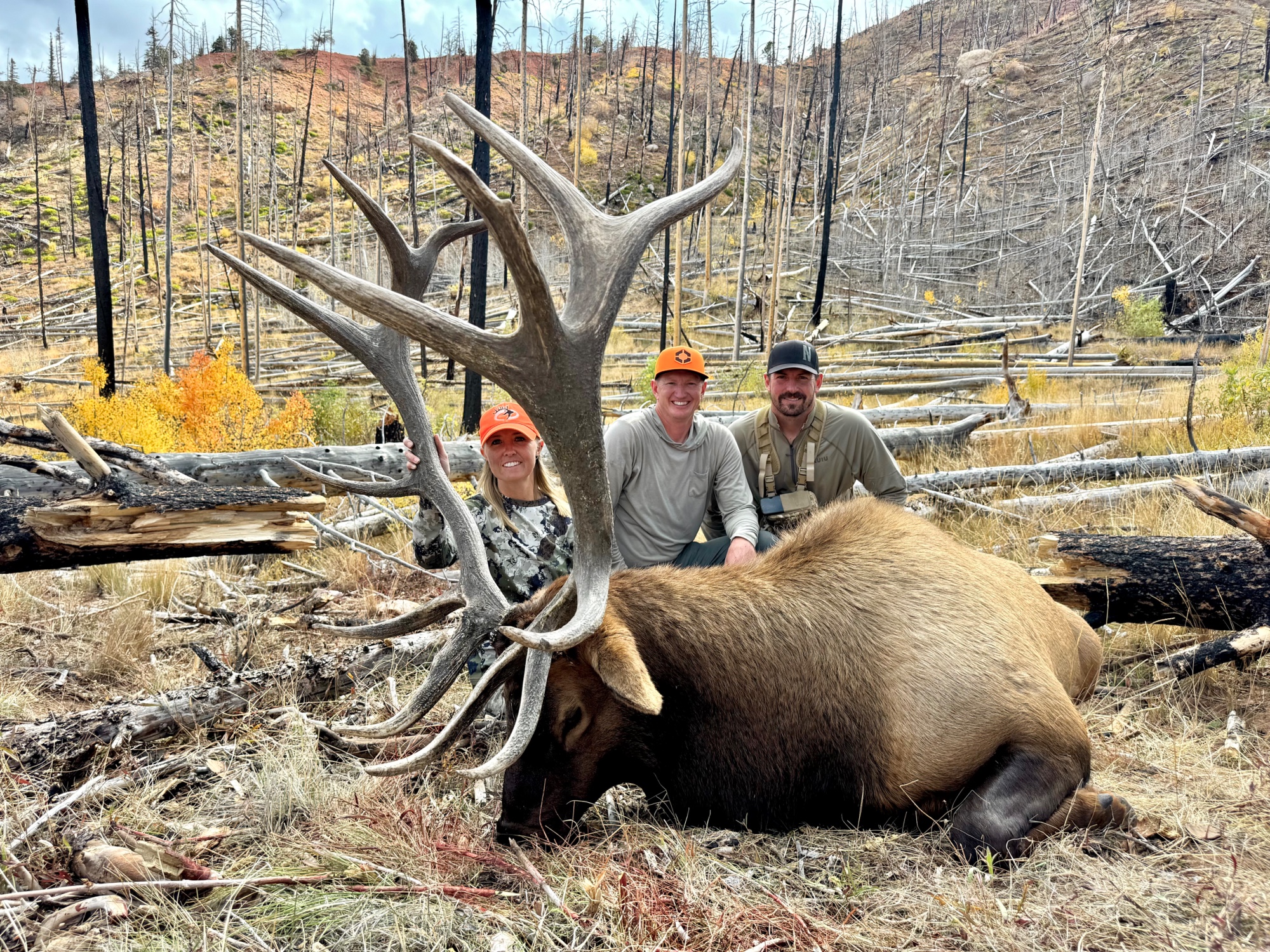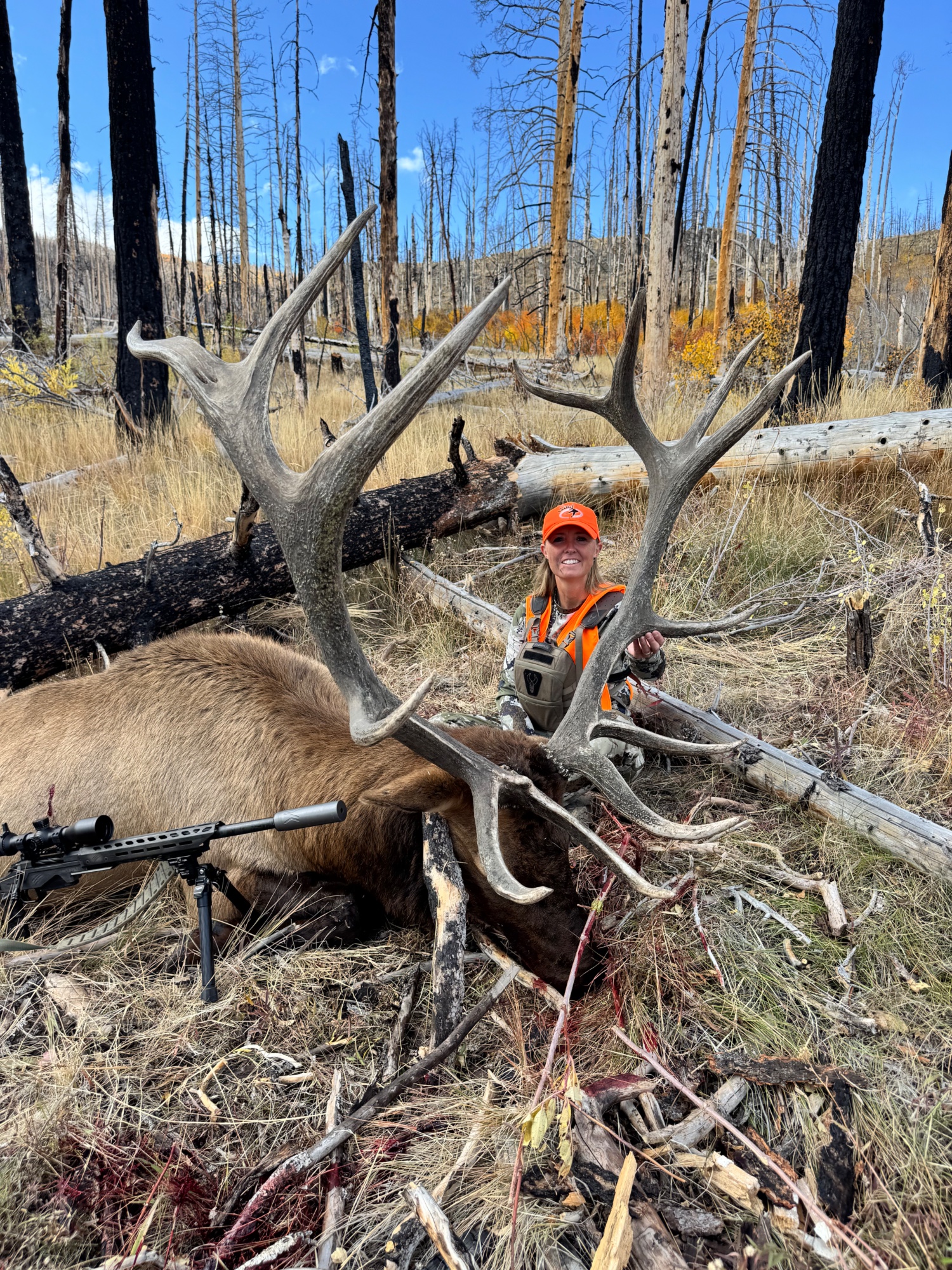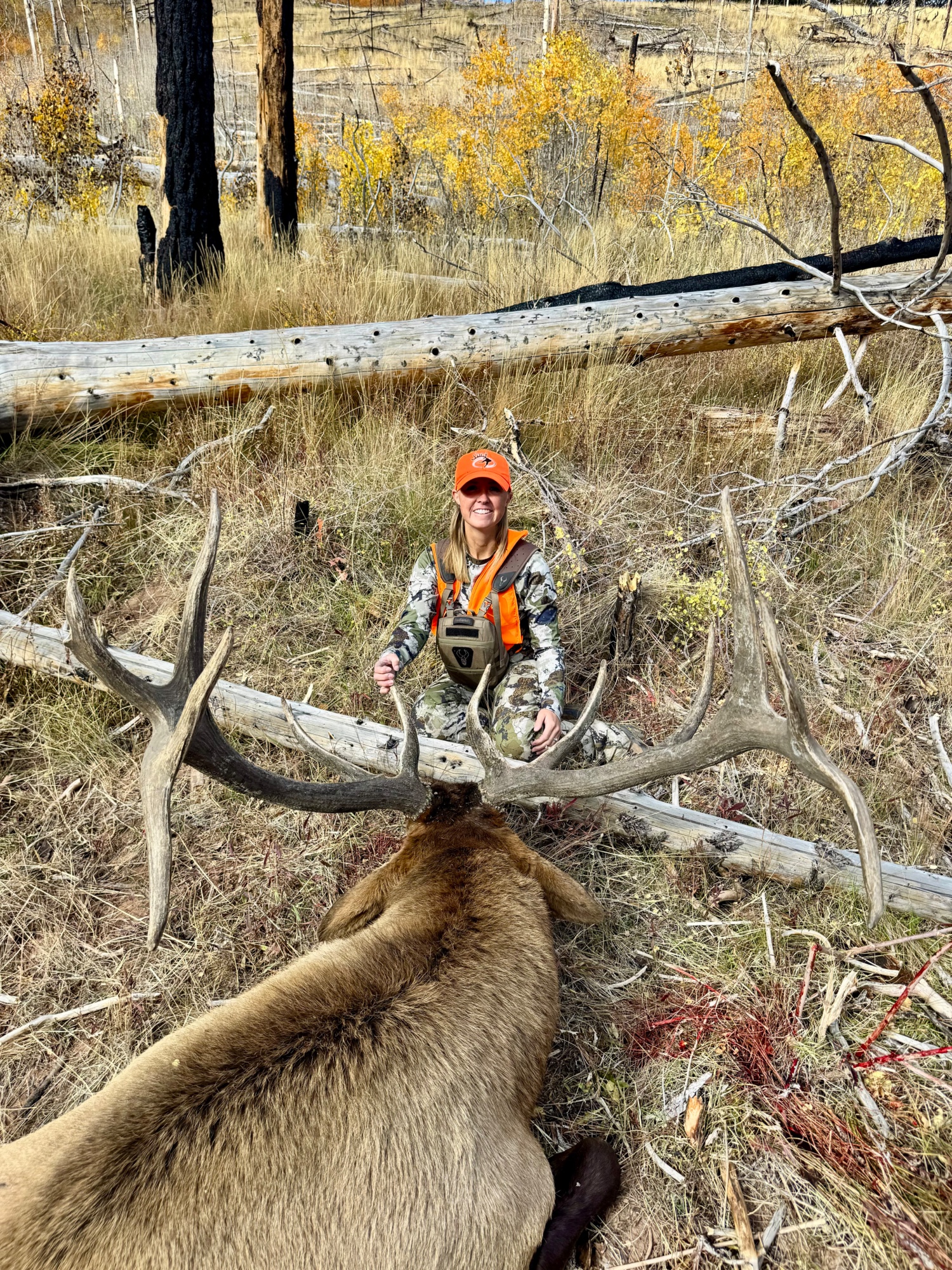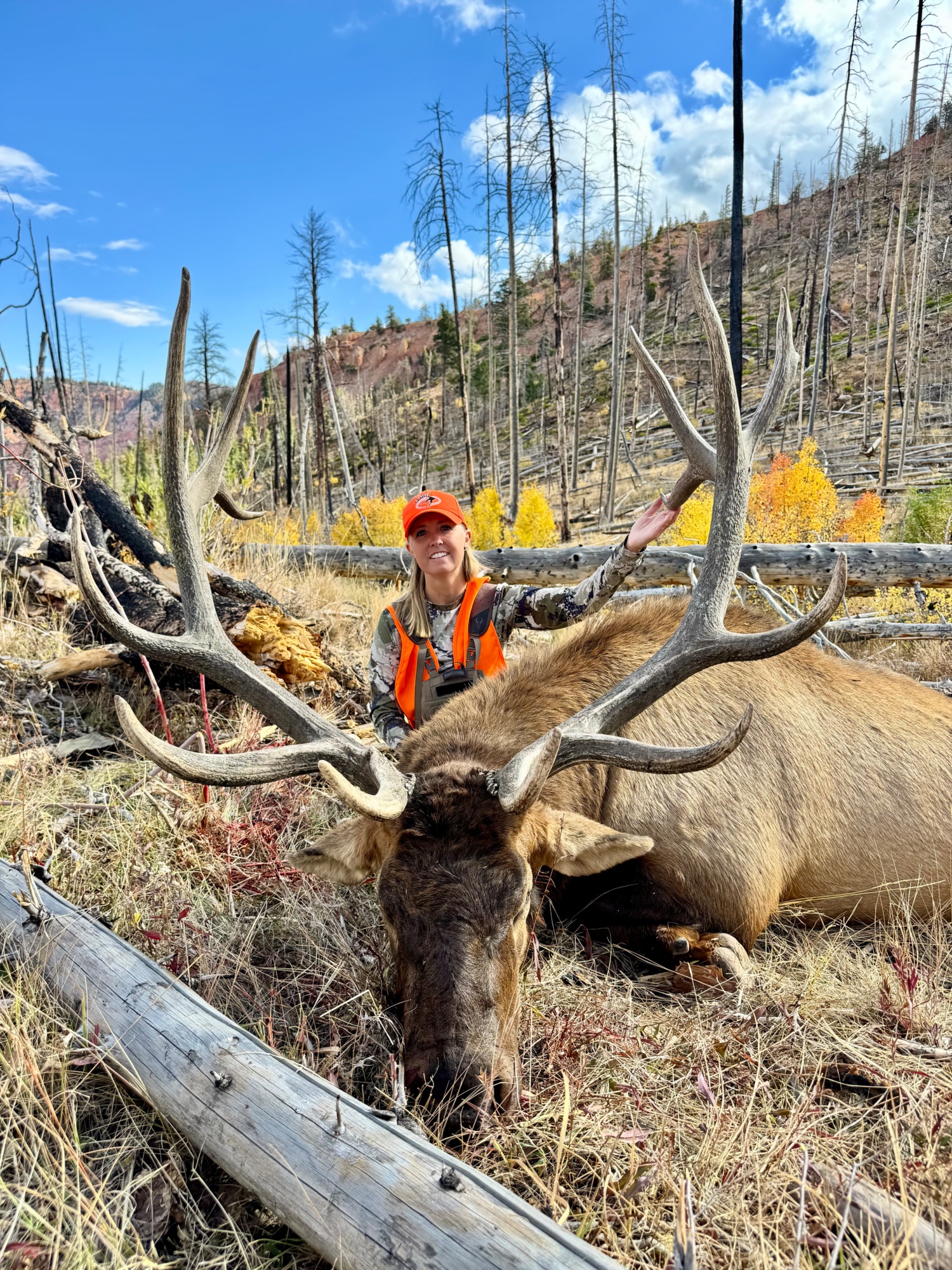 My wife got lucky this year and drew a really good elk tag in Utah with only 7 points. It was the mid season hunt so the first few days were tough battling the crowds of spike hunters chasing the same elk we were. We had done a lot of pre season scouting but after the rut and hunting pressure the elk were scattered out. After some really tough days hunting we got a tip from some great friends about this bull, and when Hailie saw him it took less than two seconds for her decide he was a shooter! After finding him his cows started feeding into the thick trees and he decided to follow them. Knowing he was going to disappear if he got into the trees and we may not get a second chance at him we decided we needed to make it happen and kill the bull where he was at. Hailie made two amazing 500 yard shots and the bull was down and the celebrations began!! I’m so proud of her for not giving up and battling through some tough conditions and experiences to get rewarded by killing this heavy awesome bull!! The Packout was the worst one we’ve ever had but thanks to our buddies Phil and Denton they made it manageable and well worth it to have a bull like that on our backs!