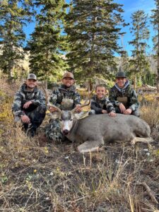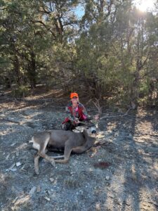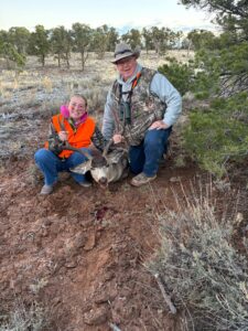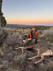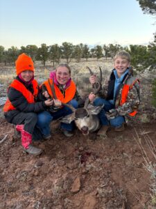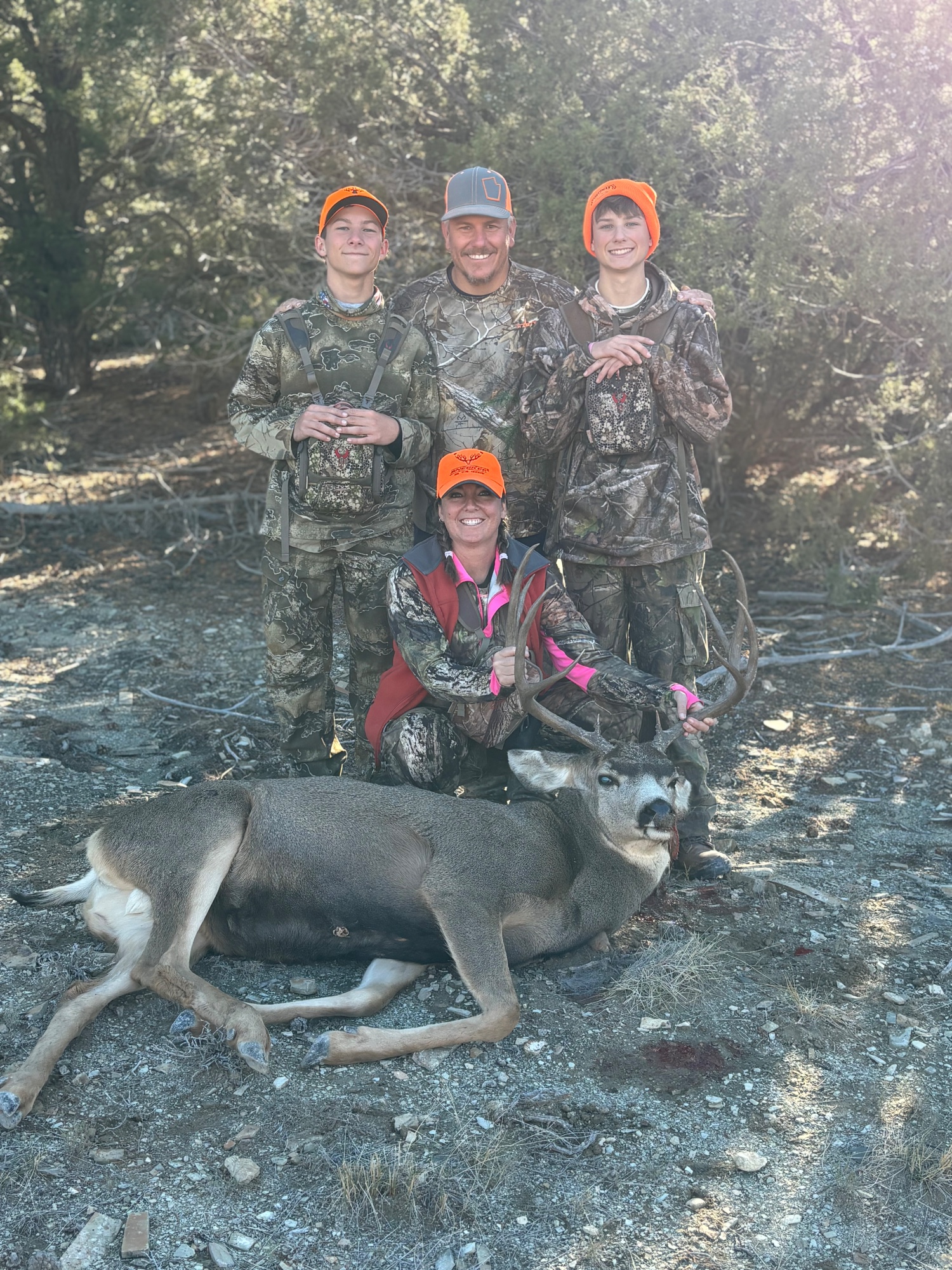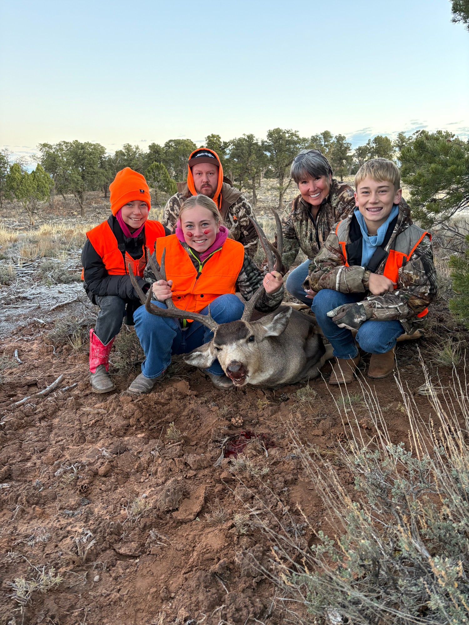 14 year old Lucy Standing worked hard to get her Hunter Safety in time to put in for a LaSal Deer tag, she was lucky enough to draw one and then was worried about Nan and Pa’s cabin burning down in the Deer Creek fire this summer. Thanks to the work of the great firefighters the fire never crossed the highway and the cabin was ok. Opening morning she found this great buck and with a perfectly placed shot with Grandpa’s trustly deer rifle she became the third generation to help fill the freezer with that rifle. She had a great hunt with her Brother, Sister, Uncle, and Nan and Pa and we all so proud of her