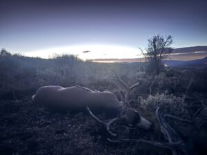 On the second day of the hunt with about an hour left of light spotted this buck from 2200 yards out, from there I started the hike. I didn’t realize I walked up the same ridge as this deer until I spotted him at 100 yards which threw me for a loop, I set up and put the hammer on him just in time. Didn’t work out the way I planned but it did in fact work out.