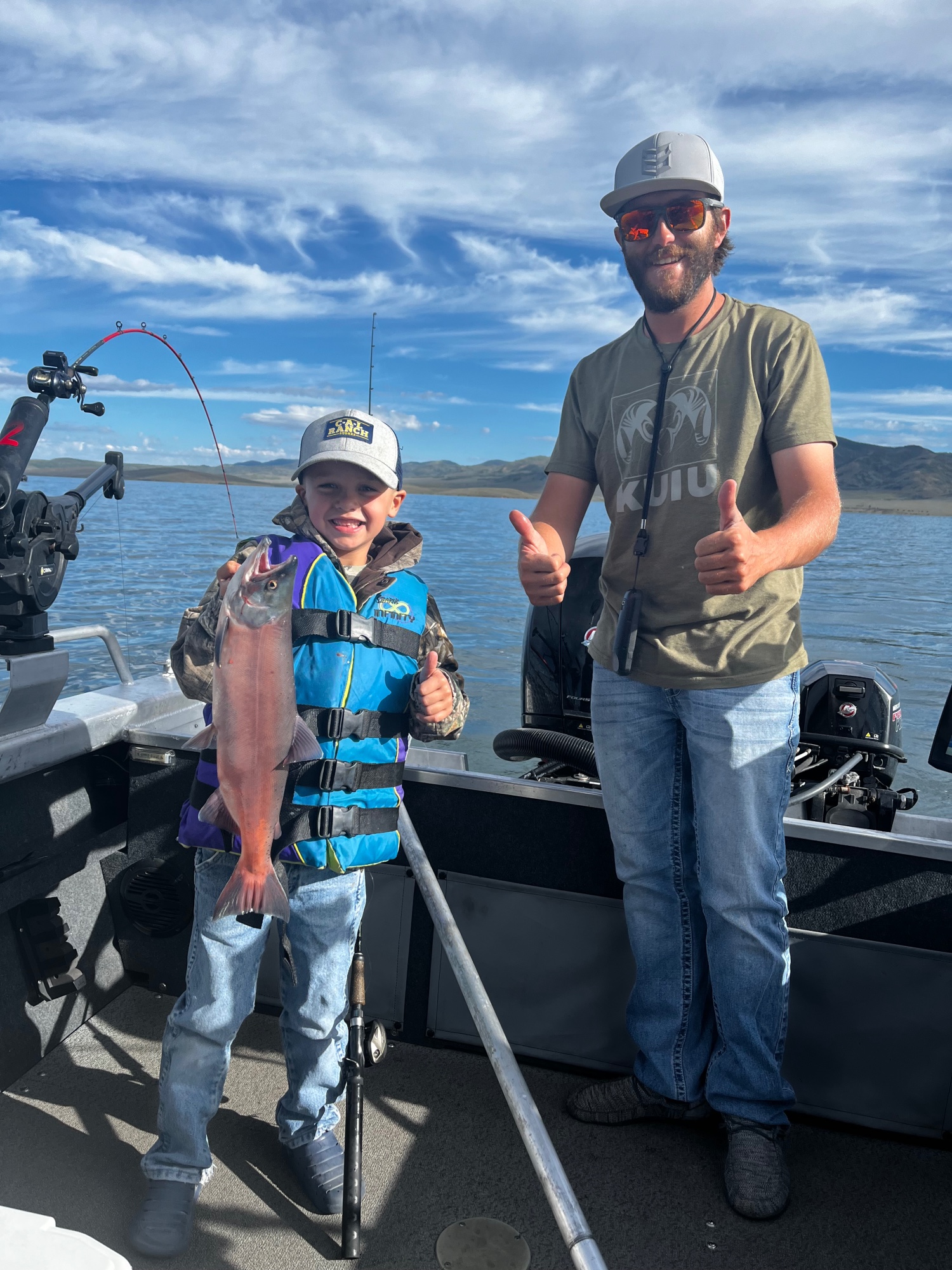 We decided to go fishing instead of hunting opening morning or the Utah archery deer hunt and McCoy Crane (7) landed this awesome fire truck Kokanee salmon on strawberry reservoir what an awesome memory to have with a good friend and my son.