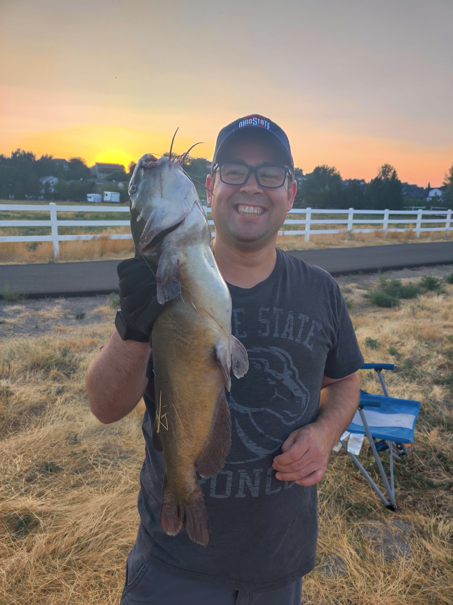 My son Jeff, who is autistic, was extremely focused when landing this 6 lb, 24″ catfish on the Jordan River on July 29th! The smile says it all!