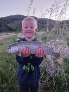 Ridge Nelson got off work and went to Scofield on 8/7. He was able to catch this good looking fish. It was about 36”