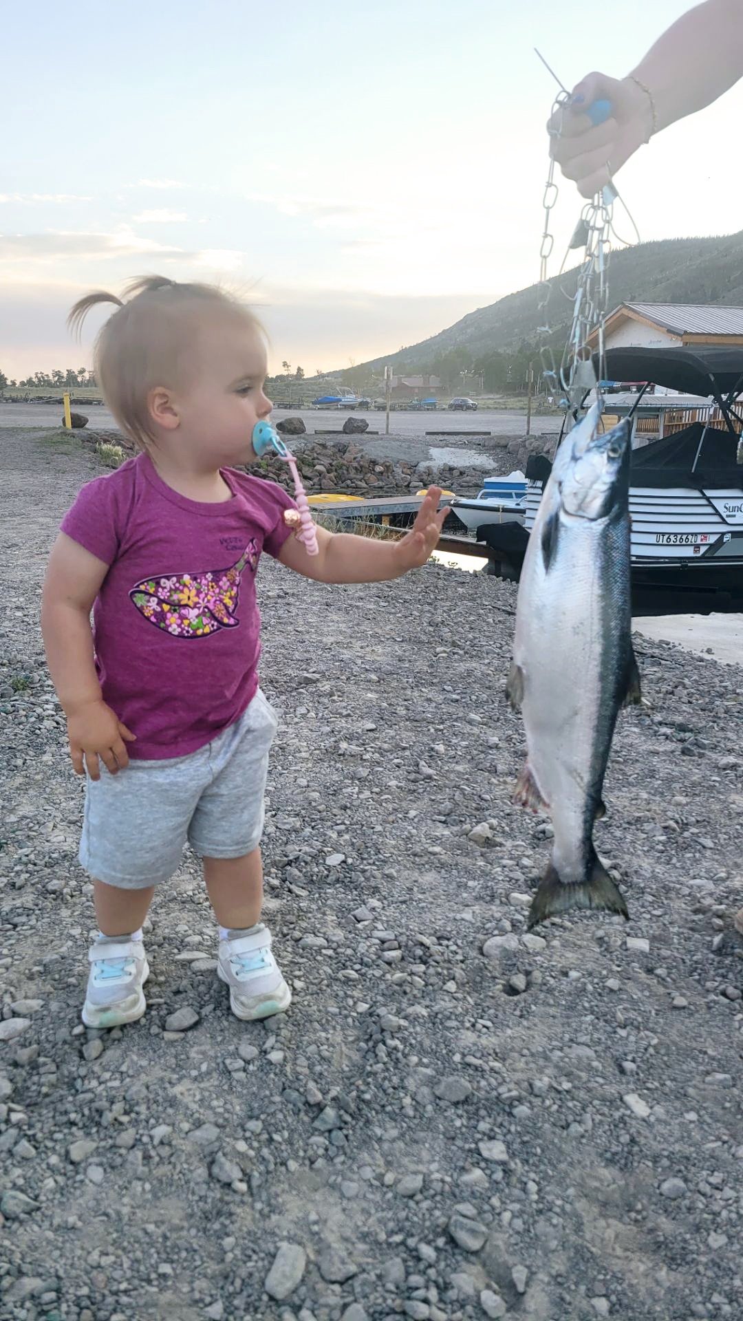 Family Trip of Firsts: My wife and I took our daughter Ivy to Fish Lake for several days with my parents and sister. The fishing was slow overall, but the fish we did catch were big. My wife caught her first Kokanee ever, and it was a 23 inch monster. My daughter also got to go fishing on the boat for the first time too. She had a great time helping Grandpa drive the boat, and watching her aunt Nicole catch and unhook fish. It was a great time with a lot of firsts and great memories for everyone!