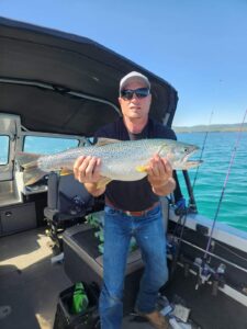 Fishing at Bear Lake on the Utah side 6/7/2024. Caught this beautiful Cutthroat while trolling. 6lbs and almost 28 inches long.