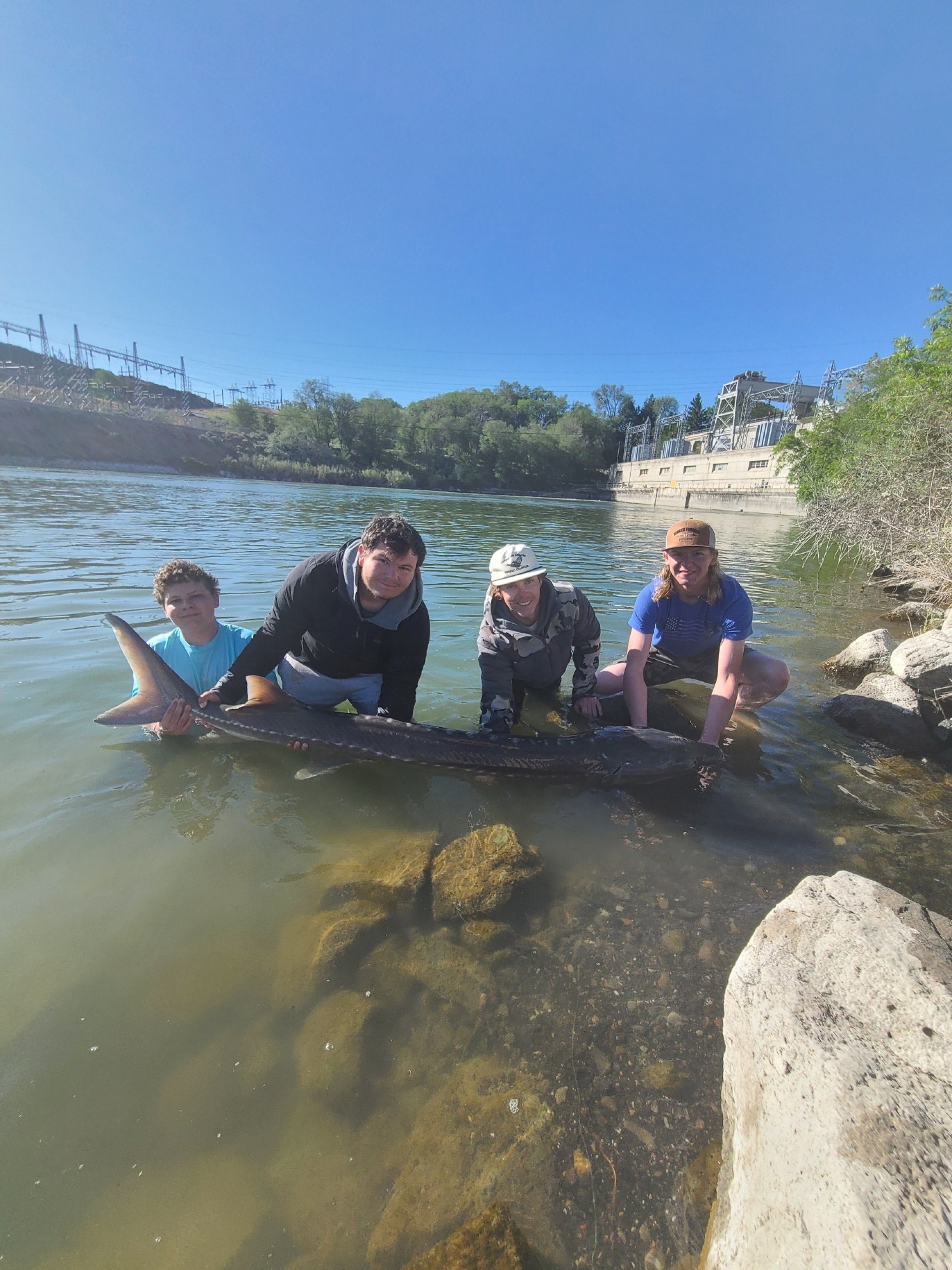 We went sturgeon fishing on the snake river in the middle of May. It was our first time sturgeon fishing and we learned a lot from this trip. We spent 3 days fishing and we slept right on the river bank in the rocks. On the 2nd day Landon was sitting there and he looked over and his rod was getting pulled like crazy. He ran over to it as fast as he could, and it almost launched in the water, but he caught his rod before it did. Landon pulled up to set the hook but the rock his rod was laying on frayed Landon’s braided line and it snapped on the hookset. In the morning, my Tyson’s friend Gavin woke up and realized that his rod was getting pulled on so Gavin set the hook and he fought the sturgeon for about 30 minutes before finally getting it in. As we were getting it, we realized that the bait had come out of the water but the sturgeon wasn’t on the bait. We realized that it was attached to some other line. Once we caught the sturgeon, we were looking at the line and we all realized that the line was the sturgeon that Landon snapped on the day before. The sturgeon was swimming past Gavin’s bait and the line got caught around his bait, and the line tied a knot in itself. So now Gavin can say that he caught a sturgeon without actually even hooking it which is crazy. The sturgeon was about 7 1/2 feet long and it was the biggest fish I’ve ever seen. Personally Landon is counting the fish as 1/2 of his because if he never snapped on the sturgeon Gavin wouldn’t have caught it. The trip was just an amazing experience and I can’t wait to go again!