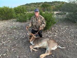 Sharon was diagnosed with ALS and was only given several short years to live. When she was given the news, her employer helped her with a disability retirement and we set off working on her bucket list. One item towards the top of her list was a trip to Texas to see the JFK museum, the Alamo and go on an exotic animal hunt. Last Fall, we were able to travel to Texas to see the sights and experience a great hunt, first class food and stay at the Saje Lodge near Del Rio Texas. She really wanted this Chocolate Fallow Deer and it took her 3 days of hunting but she was successful on bagging this beautiful buck. I was able to shoot the first Oryx I had ever seen live and was able to get my first Black Hawaiian Ram. We had a great trip and have many more things to do on her bucket list.