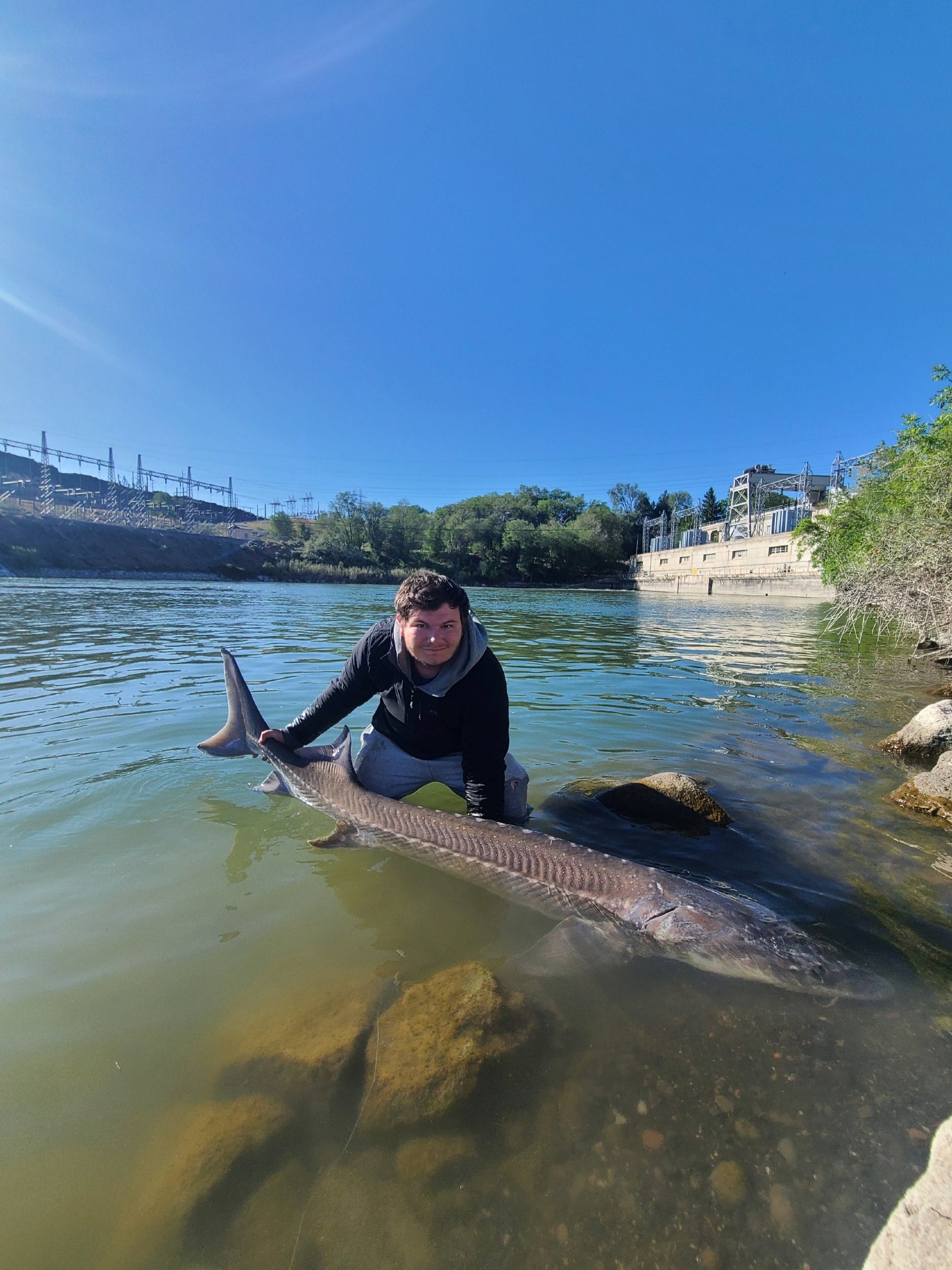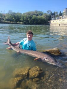 We went sturgeon fishing on the snake river in the middle of May. It was our first time sturgeon fishing and we learned a lot from this trip. We spent 3 days fishing and we slept right on the river bank in the rocks. On the 2nd day Landon was sitting there and he looked over and his rod was getting pulled like crazy. He ran over to it as fast as he could, and it almost launched in the water, but he caught his rod before it did. Landon pulled up to set the hook but the rock his rod was laying on frayed Landon’s braided line and it snapped on the hookset. In the morning, my Tyson’s friend Gavin woke up and realized that his rod was getting pulled on so Gavin set the hook and he fought the sturgeon for about 30 minutes before finally getting it in. As we were getting it, we realized that the bait had come out of the water but the sturgeon wasn’t on the bait. We realized that it was attached to some other line. Once we caught the sturgeon, we were looking at the line and we all realized that the line was the sturgeon that Landon snapped on the day before. The sturgeon was swimming past Gavin’s bait and the line got caught around his bait, and the line tied a knot in itself. So now Gavin can say that he caught a sturgeon without actually even hooking it which is crazy. The sturgeon was about 7 1/2 feet long and it was the biggest fish I’ve ever seen. Personally Landon is counting the fish as 1/2 of his because if he never snapped on the sturgeon Gavin wouldn’t have caught it. The trip was just an amazing experience and I can’t wait to go again!