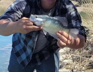 I was fishing for largemouth bass at Oquirrh lake when I stumbled upon an unbelievable catch, a white bass tying the current catch & release state record, I was fishing in the small duck pond and caught it on a orange ned rig. It was a 3.8lbs 19in MONSTER.