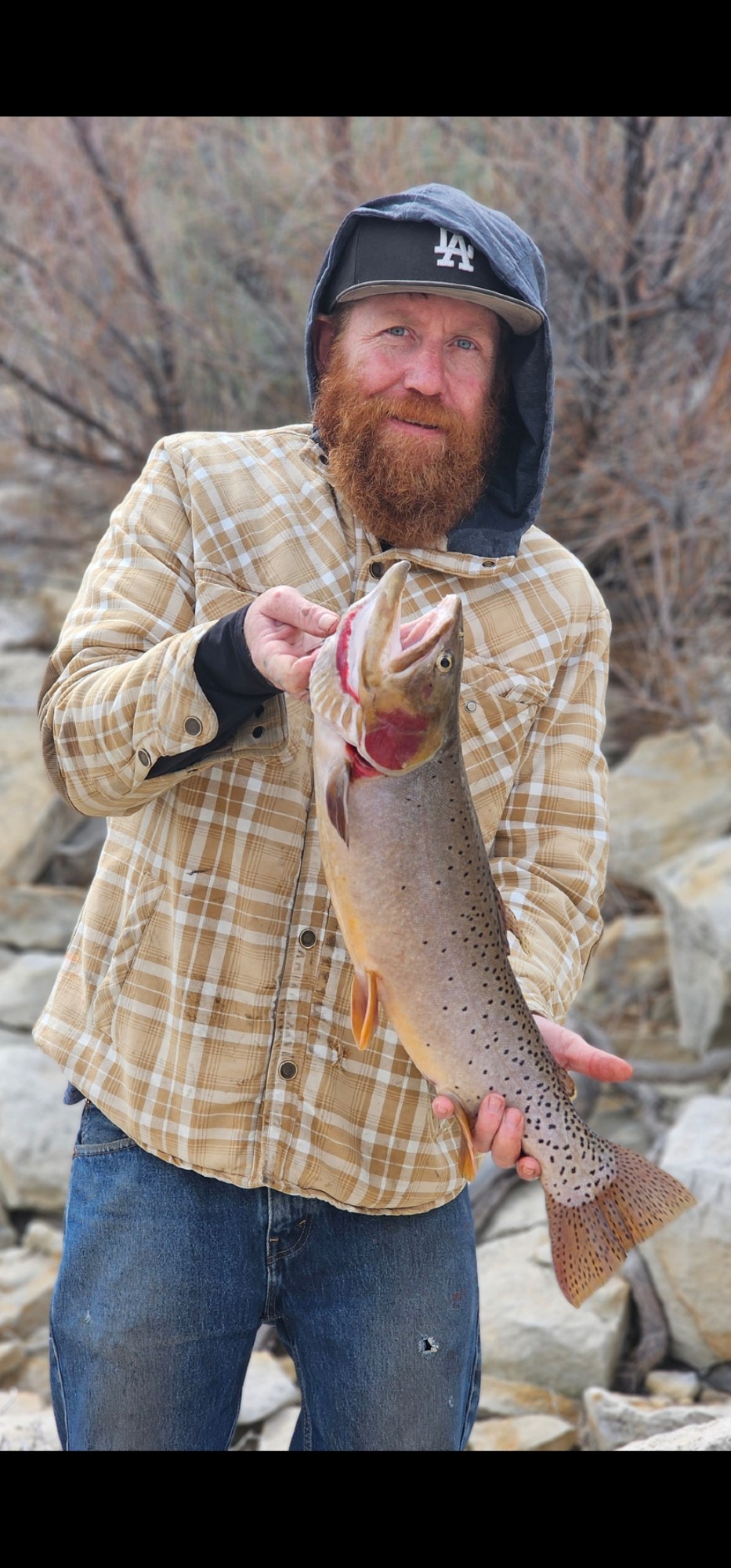 I went fishing for the first time with my father in law and caught this 24 in 5.8 lb cutthroat. I guess i proved to him that I had the ingredients ;). It was also my first trip to Flaming gorge. We fished off the bank at swim beach and we were using single hook worm and garlic marshmallows. Photo by Butch Robinson ( father in- law) Caught Friday may 10 2024