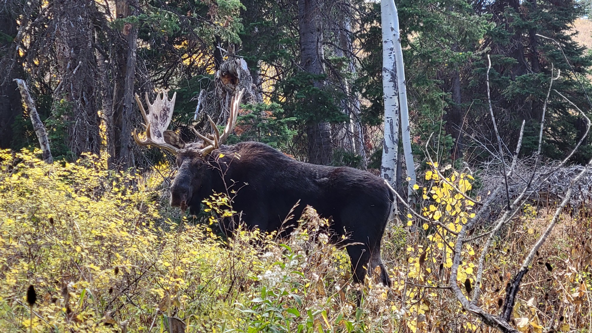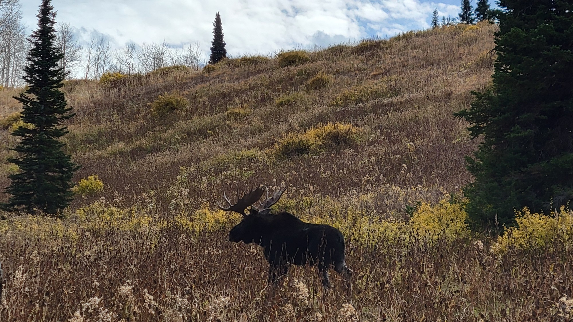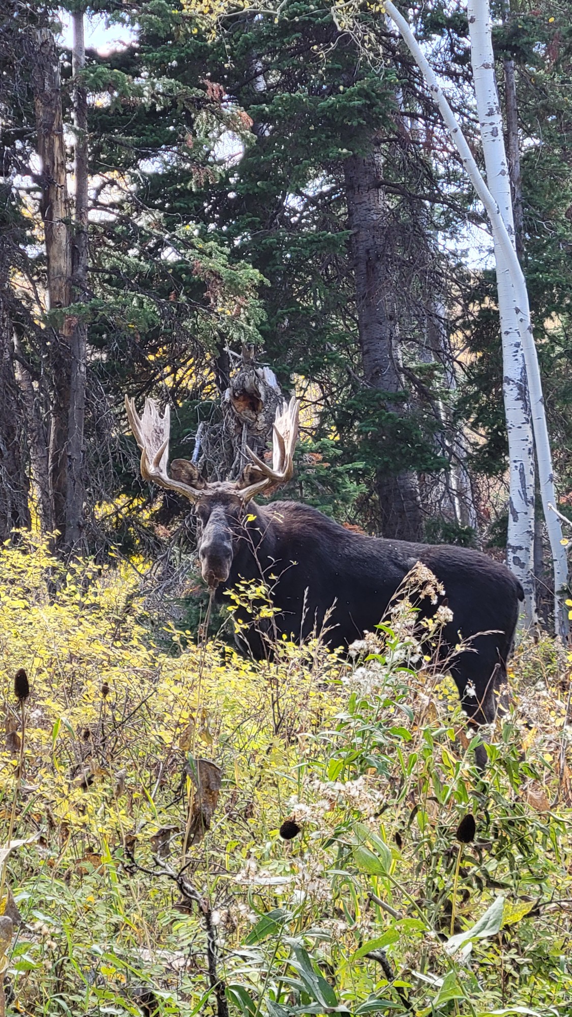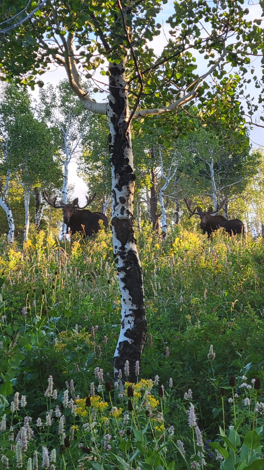 While hiking with my father we came across this pair of majestic bull moose in N. Utah. We were able to watch them for ~ 30 minutes and take in their magnificent size and beauty. What an amazing experience on my birthday with my dad. We went back later in the fall and were able to capture another big pair together. 2 really fun trips.