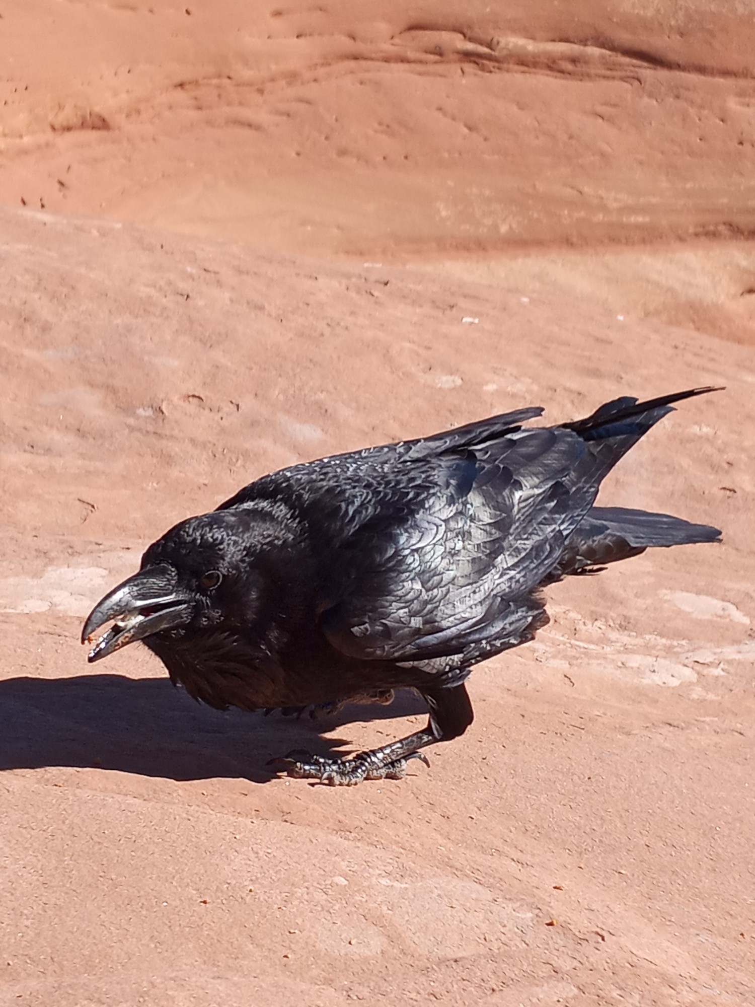 Feeding the ravens some granola at arches national park