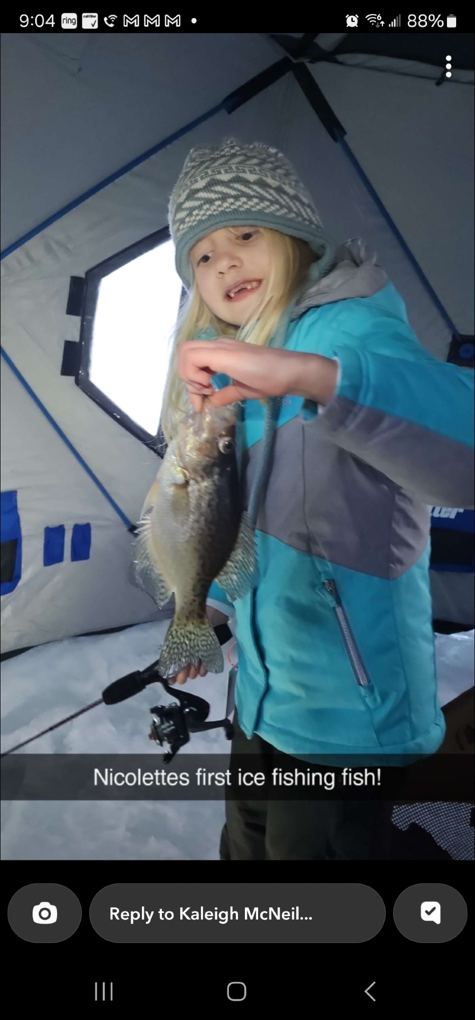 Moved from Alabama and got into ice fishing. Nicolette (5 years old) caught her first ever fish while ice fishing! Super excited!