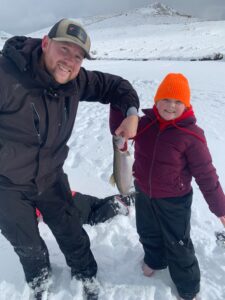 Paisley finally realized her dream of going ice fishing with Grandpa John at Strawberry. She had longed for this experience ever since she witnessed her older brothers enjoying it so much. Every time she asked Grandpa to take her, he would insist she needed the right boots. So, for Christmas, Paisley requested snow boots specifically for this occasion. On this day, Grandpa John, Uncle Camron, and a few cousins set out to Strawberry for their ice fishing adventure. As they patiently waited on the ice, Paisley’s excitement peaked when she noticed her line bouncing. With determination, she sprang into action, reeling in the biggest catch of the day: a 21-inch trout. Her success wouldn’t have been possible without Uncle Camron’s quick assistance, who bravely reached his arm down the hole to secure the fish as the line snapped. Paisley cherished every moment of the experience and eagerly anticipates her next ice fishing trip with Grandpa.