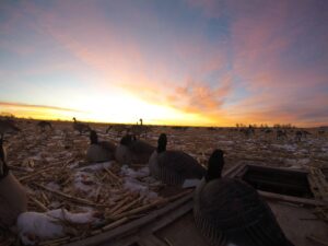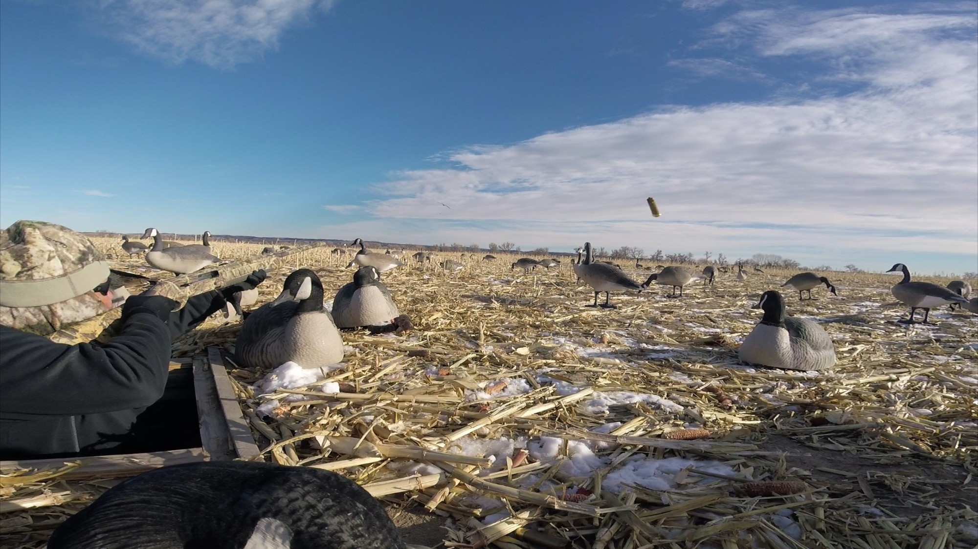 Early morning sunrise on a late season Wyoming goose hunt. This sunrise started a great morning of hunting. Two of us were able to limit out in an hour and a half . The last picture showing the last goose after the shot and before it was hit.